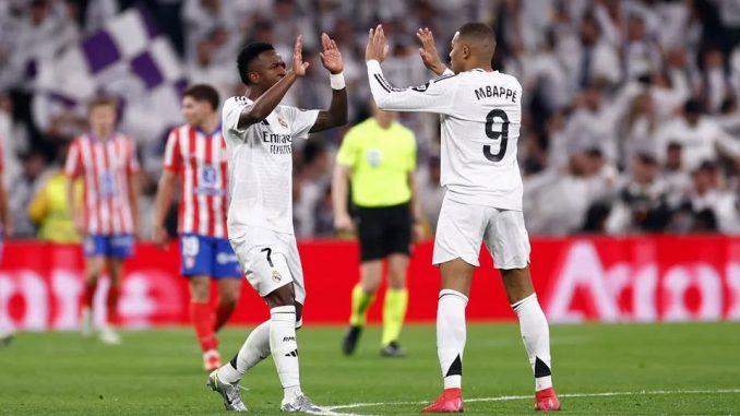 Real Madrid empató contra el Atlético en el derbi disputado en el Santiago Bernabéu y se mantiene líder de la Liga. El conjunto visitante se adelantó en la primera mitad tras un penalti revisado por el VAR que convirtió Julián Álvarez, pero Mbappé logró el 1-1 nada más arrancar la segunda mitad. Nuestro equipo, que tuvo numerosas ocasiones para ganar, se encontró con un Oblak muy inspirado en la portería y el resultado se mantuvo hasta el final.