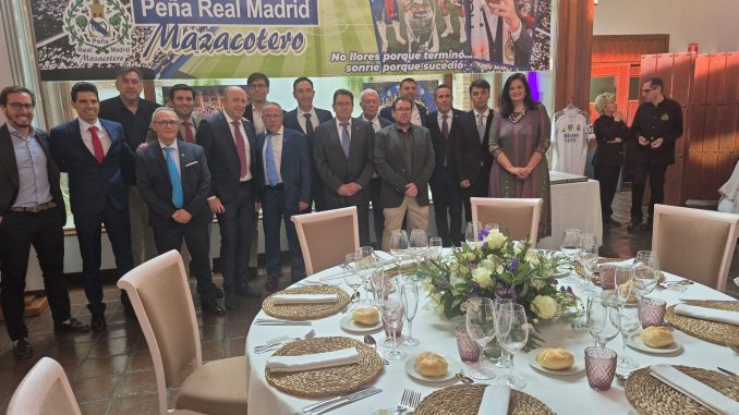 Con la presencia de más de 300 comensales se ha celebrado este domingo 2 de noviembre el 42 Aniversario de la Peña Mazacotero. Al acto asistieron Oscar «Miñambres» Pascual (exjugador del Real Madrid), Chechu Biriukov (exjugador de baloncesto del Real Madrid), Andres Martín Ramos (alcalde de Torrijos), Miguel del Castillo Romero (concejal de comercio, industria, asociaciones y festejos Ayto. de Torrijos), Jesús Vaquero Sánchez (capitán de la 5º Compañía de la Guardia Civil), Rocio López González (exdiputada por Toledo), Ángel del Alamo Castaño (presidente de honor de la Peña Real Madrid Mazacotero).