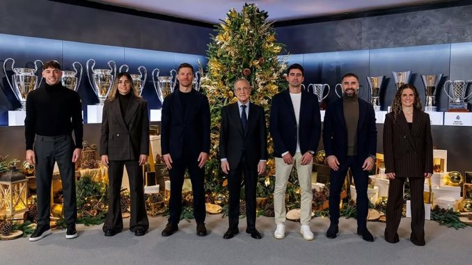 Florentino Pérez, Xabi Alonso, Carvajal, Valverde, Scariolo, Llull, Tavares, Pau Quesada, Misa y Teresa protagonizan el reportaje navideño del Real Madrid. El presidente, los entrenadores y los capitanes de los tres equipos felicitan las fiestas al madridismo y envían sus mejores deseos para 2026.